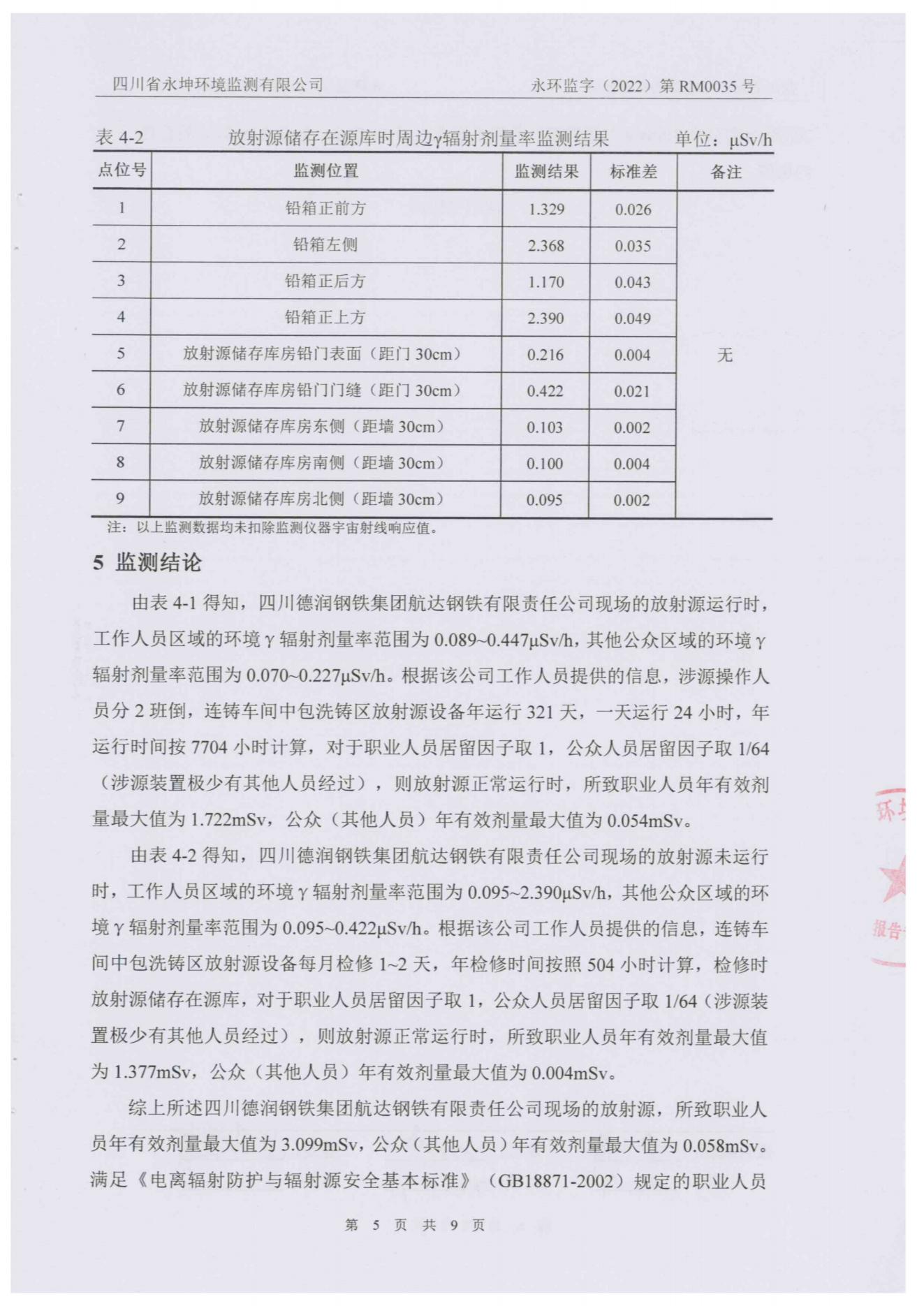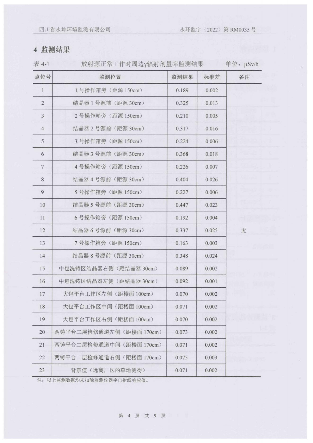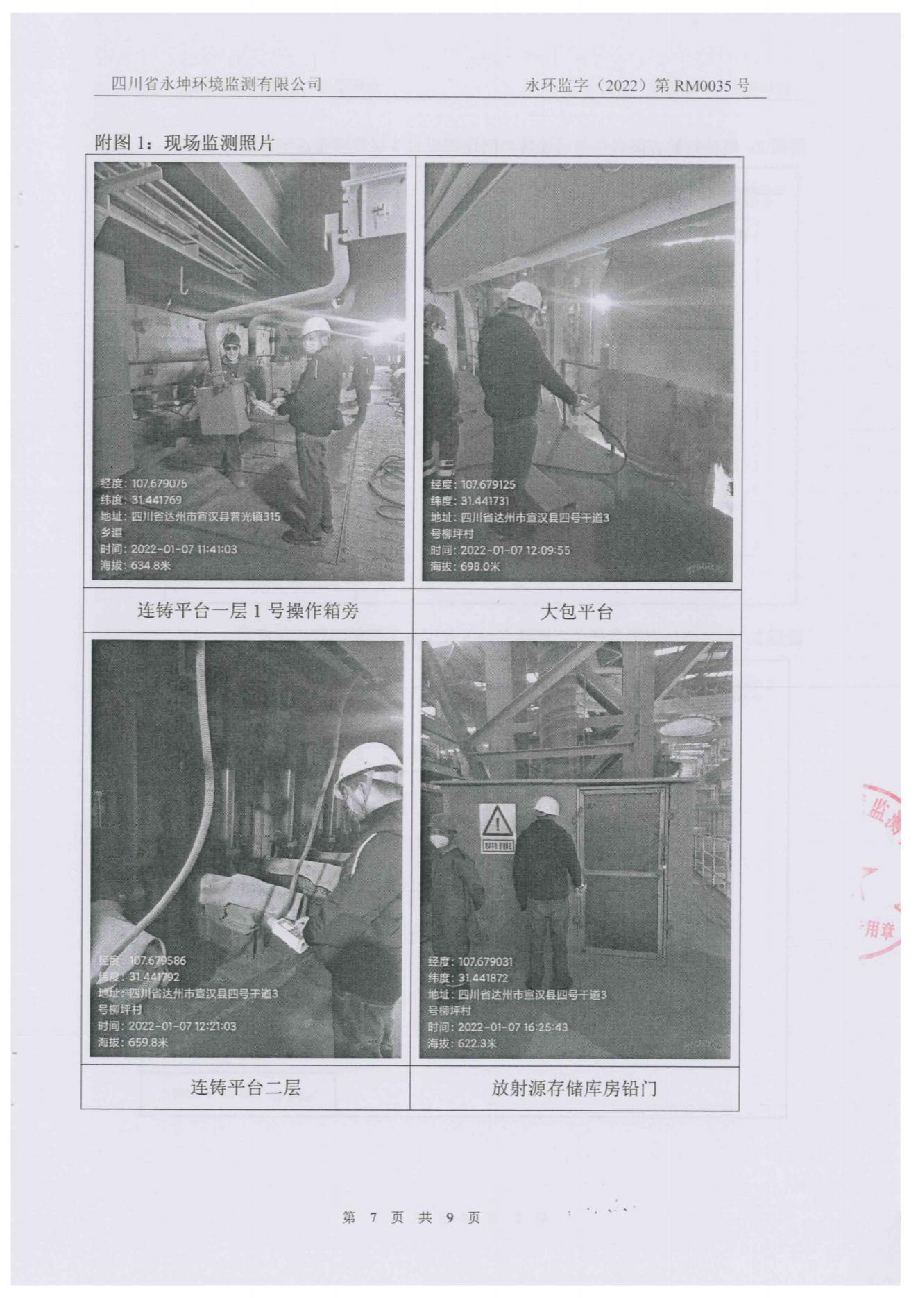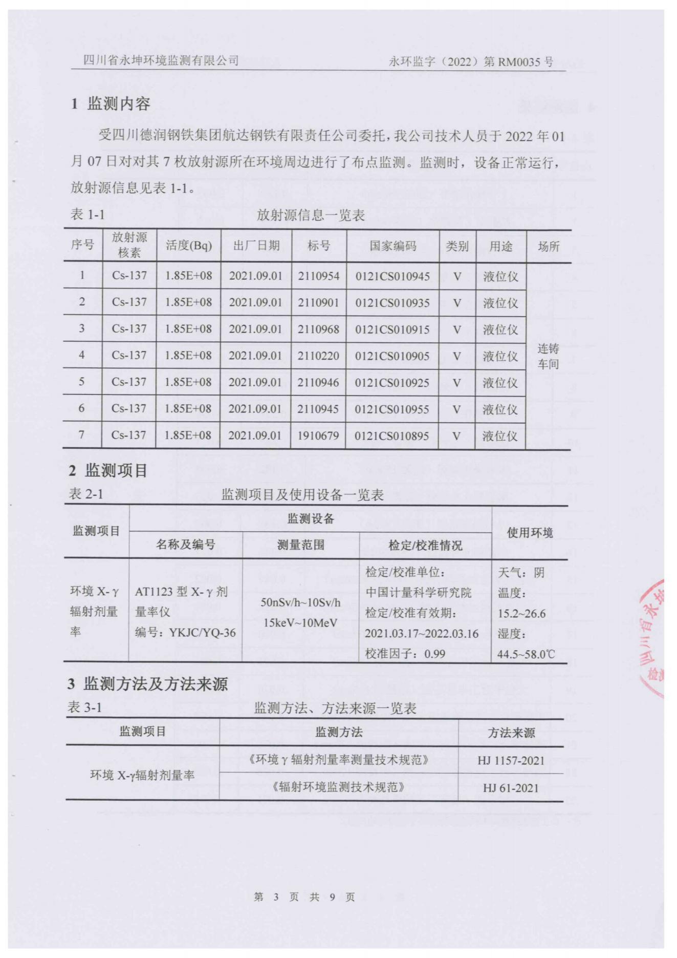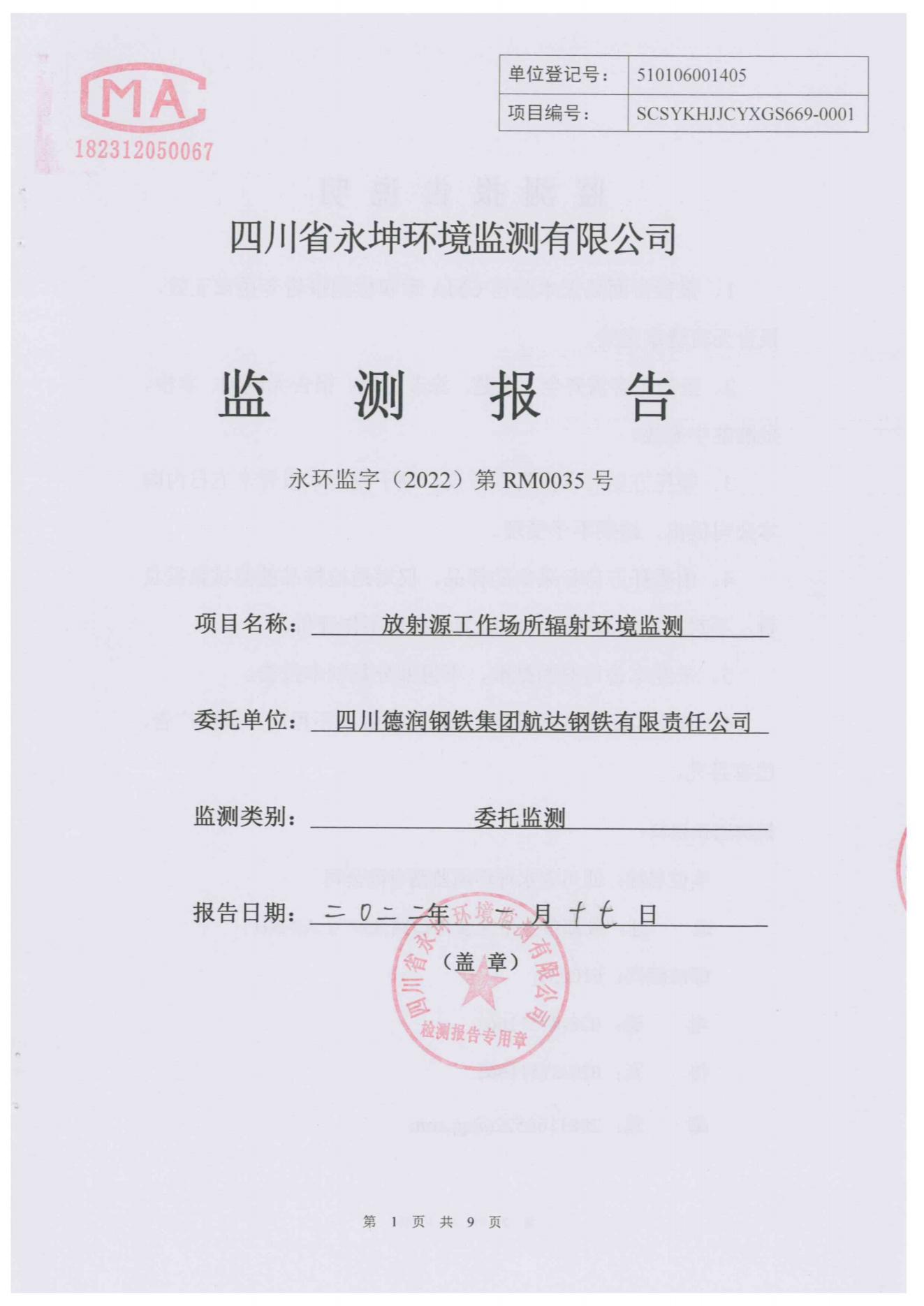 航達(dá)鋼鐵2022年一季度放射源工作場(chǎng)所輻射環(huán)境監(jiān)測(cè)信息公開(kāi)