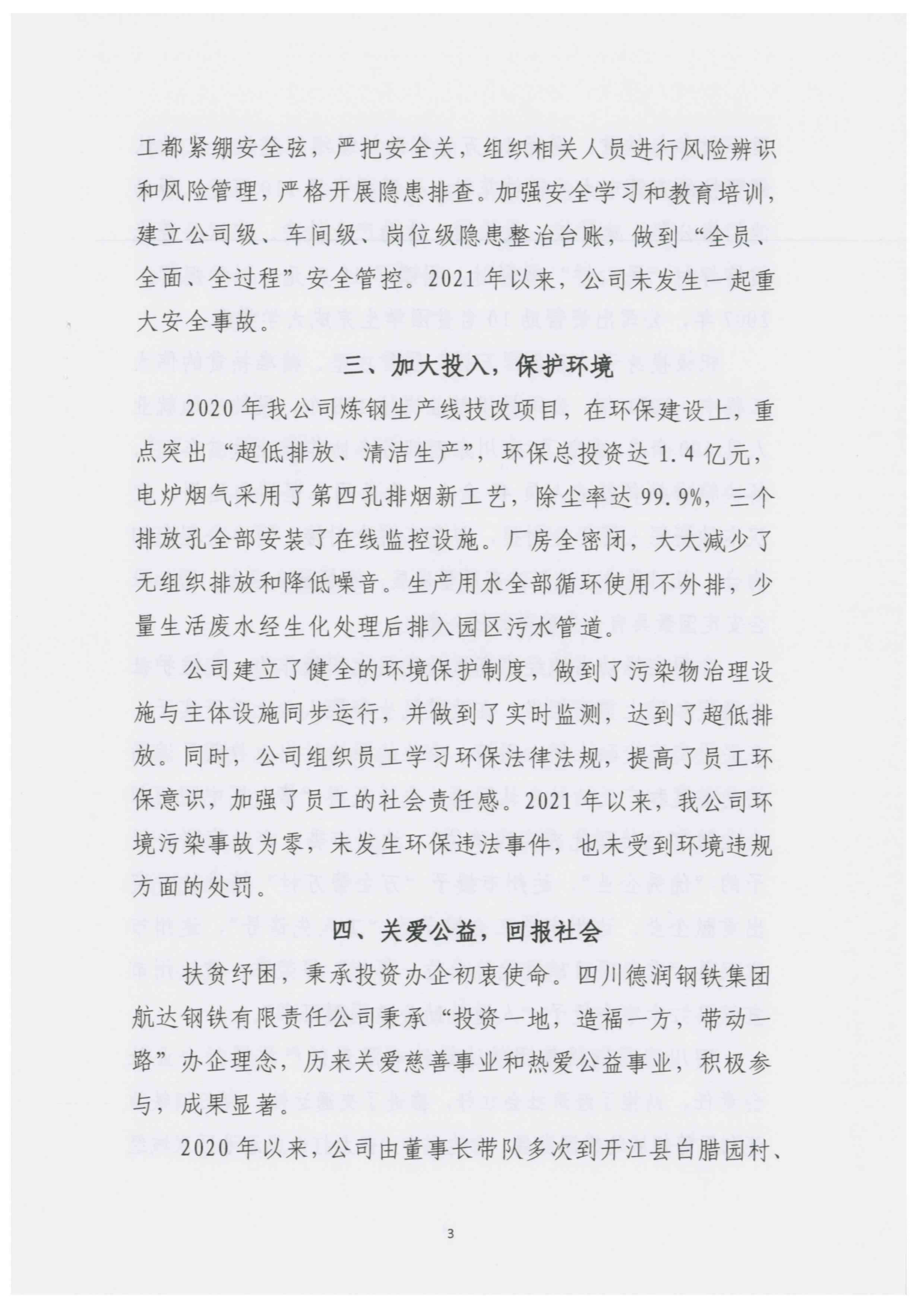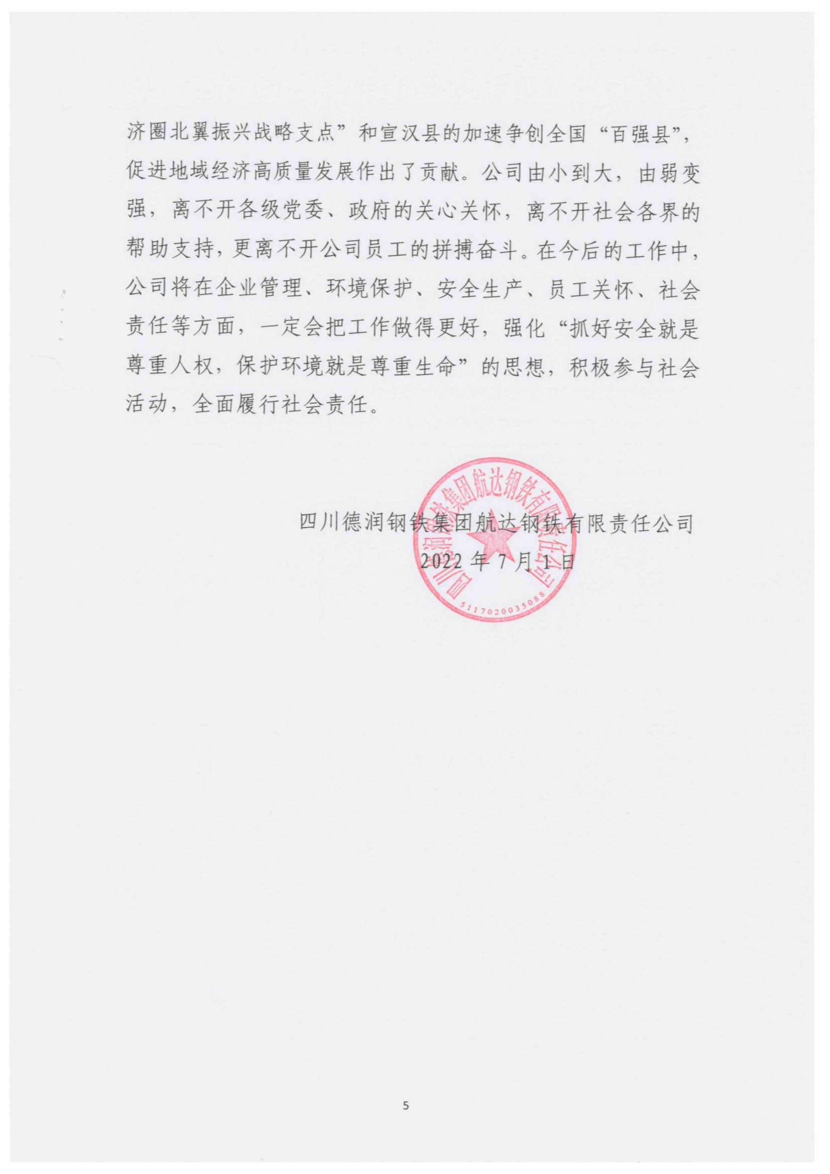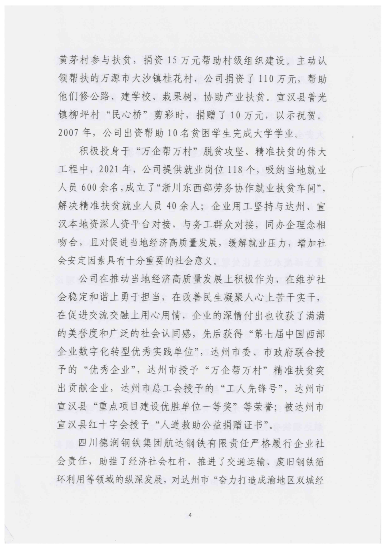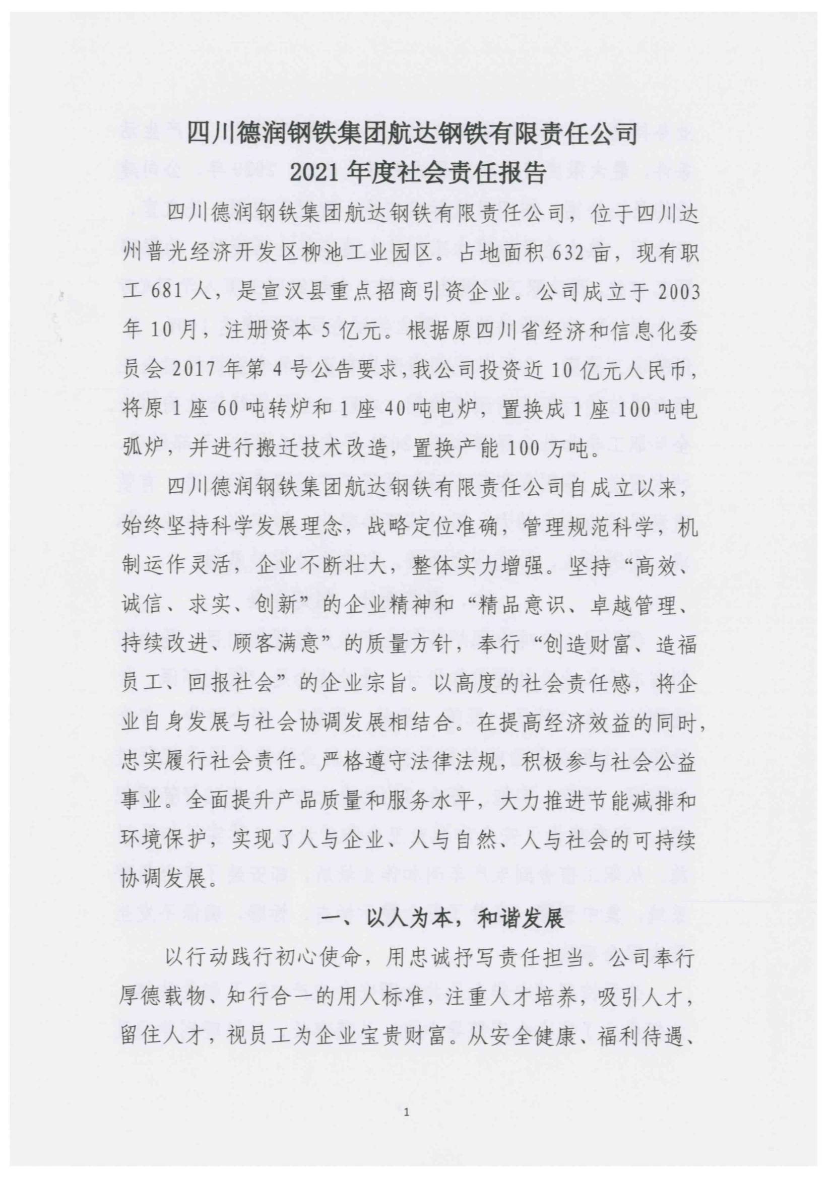 四川德潤鋼鐵集團航達鋼鐵有限責任公司2021年度社會責任報告