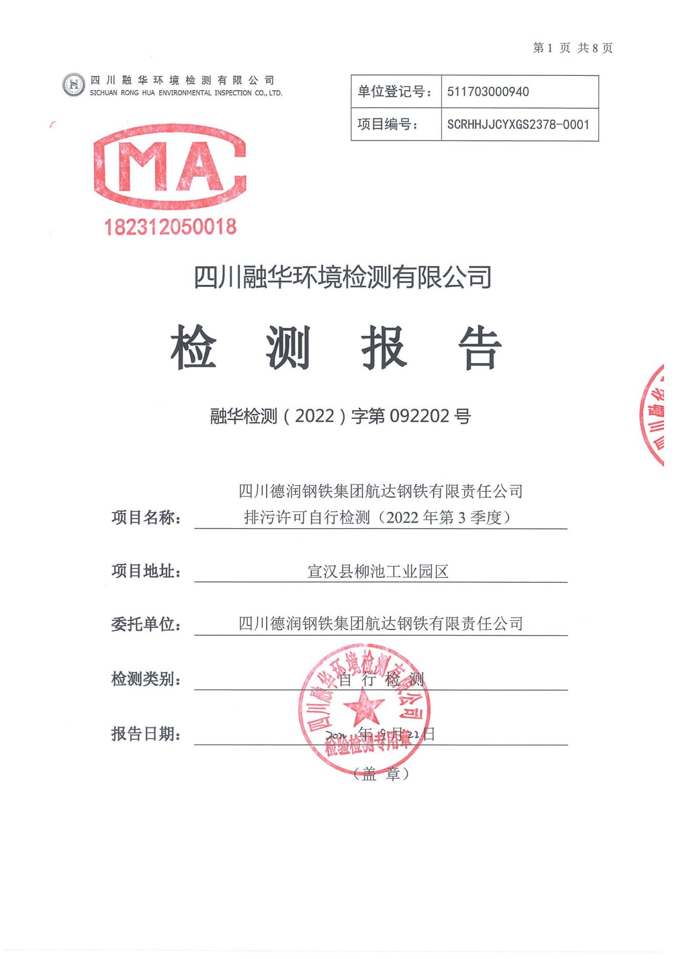 航達鋼鐵2022年三季度自行檢測信息公開