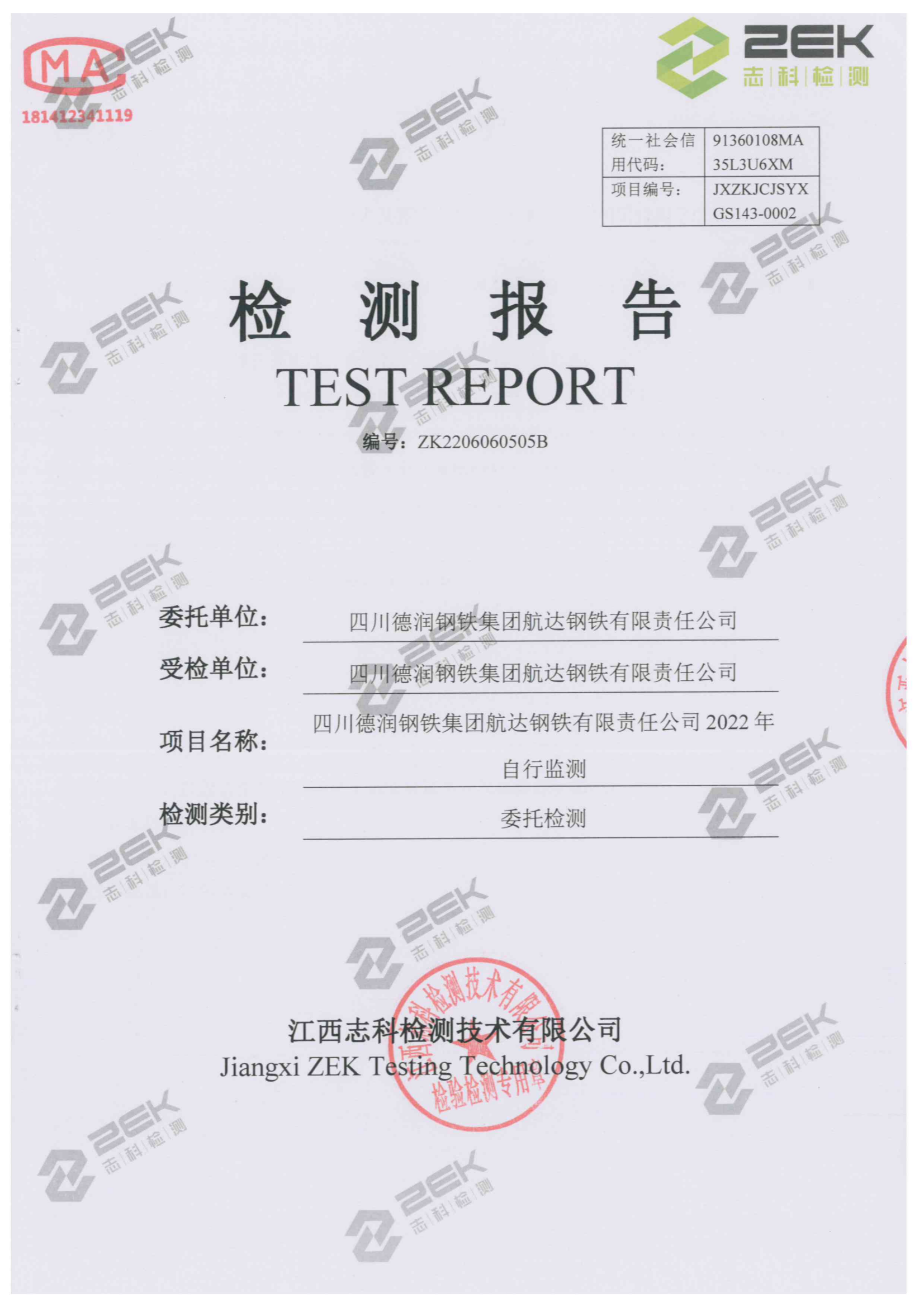 航達鋼鐵2022年下半年自行檢測信息公開