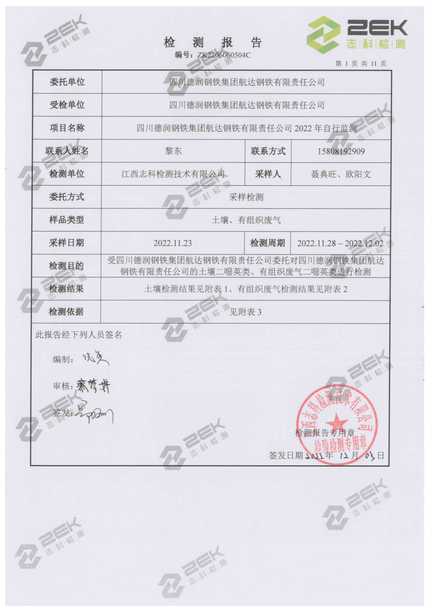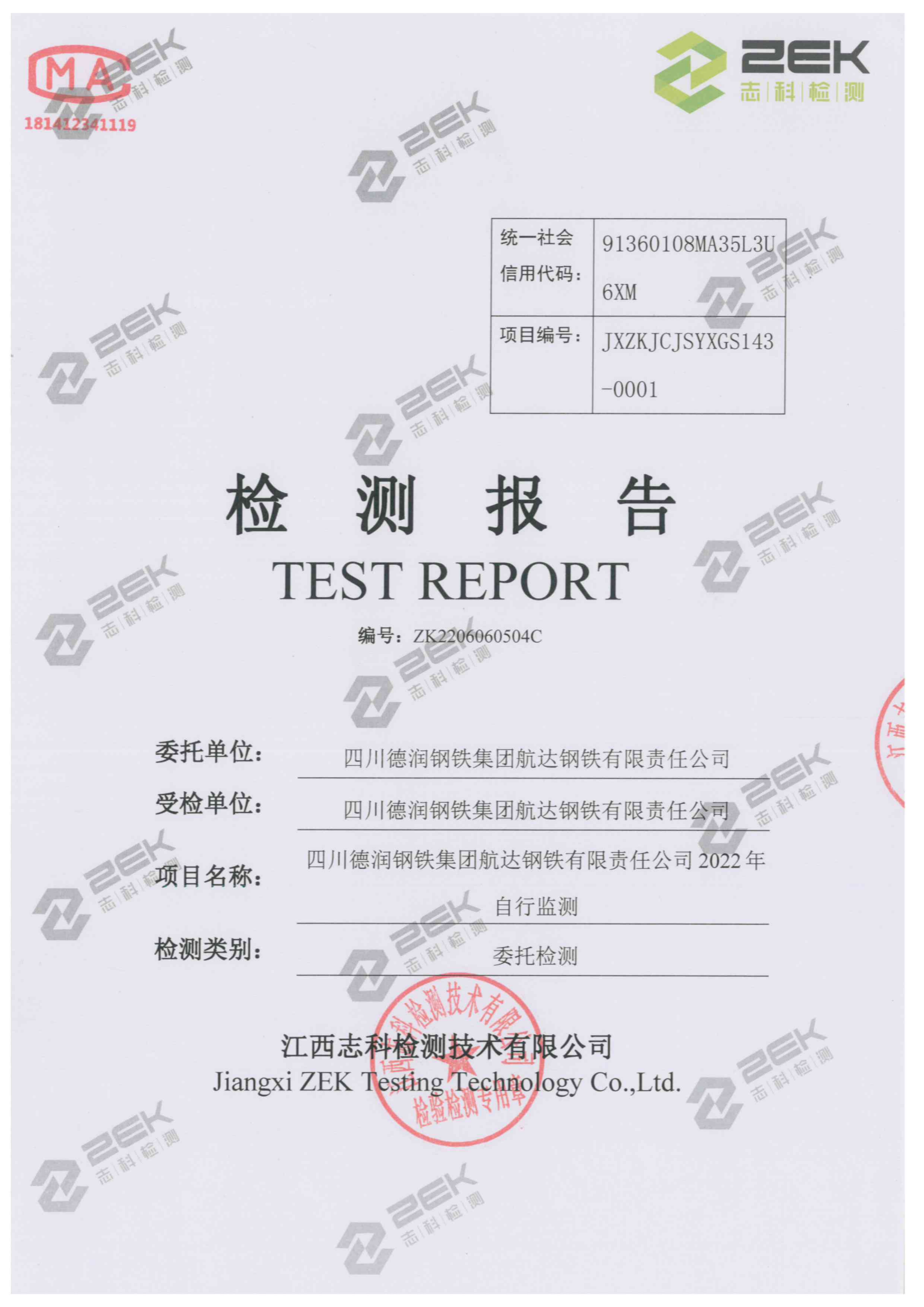 首頁 > 新聞資訊 > 集團要聞 > 航達鋼鐵2022年年度自行檢測信息公開