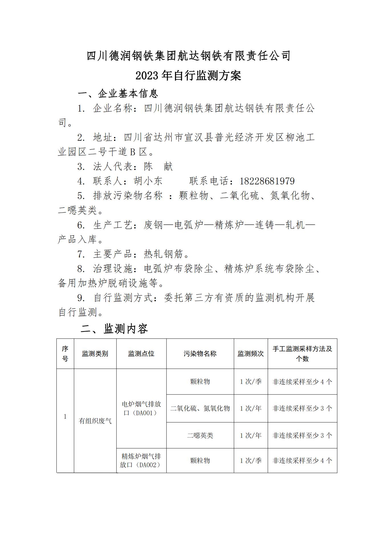 航達鋼鐵2023年自行監(jiān)測方案