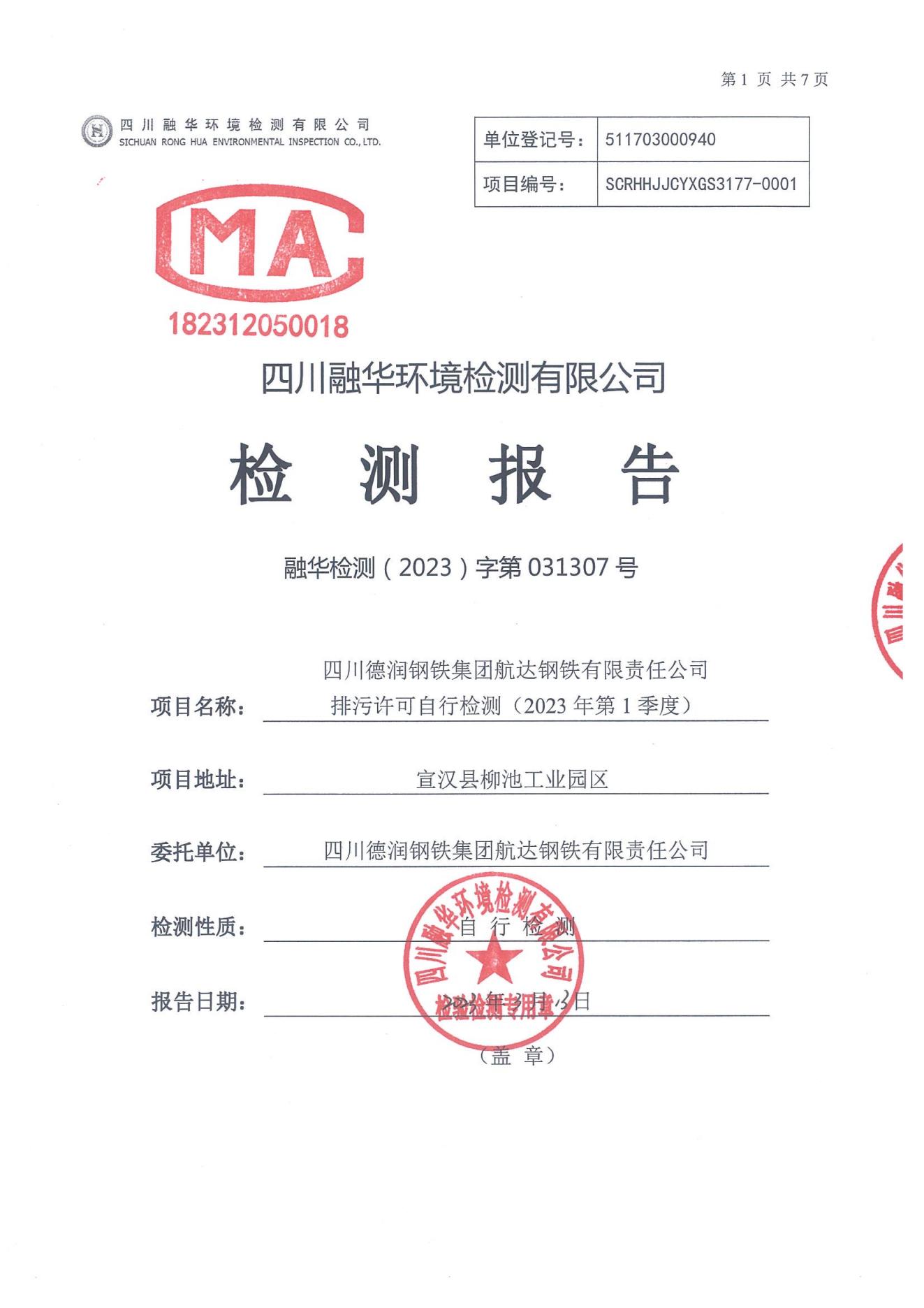 首頁 > 新聞資訊 > 集團要聞 > 航達鋼鐵2023年一季度自行檢測報告