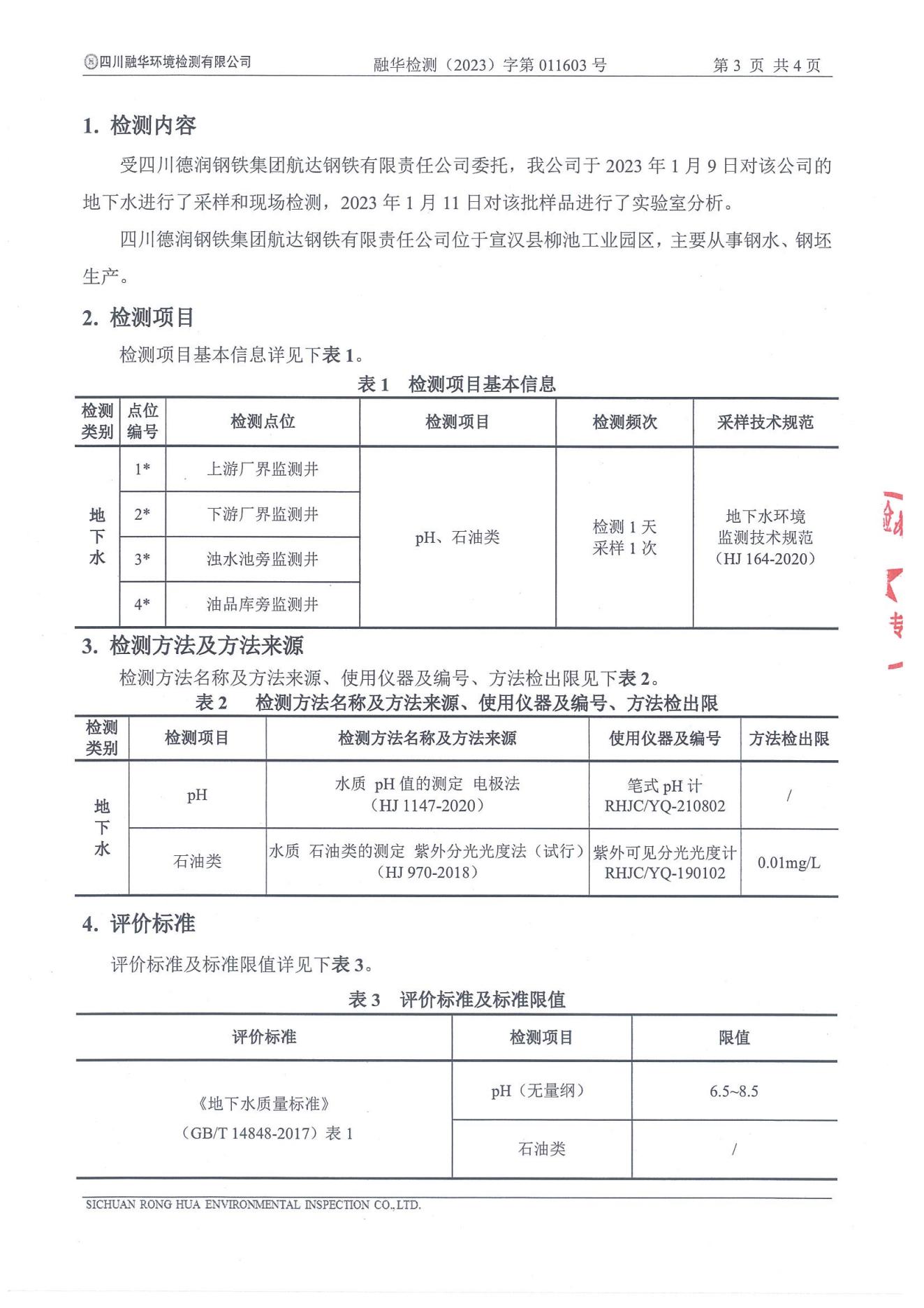 首頁 > 新聞資訊 > 集團要聞 > 航達鋼鐵2023年1月地下水檢測報告