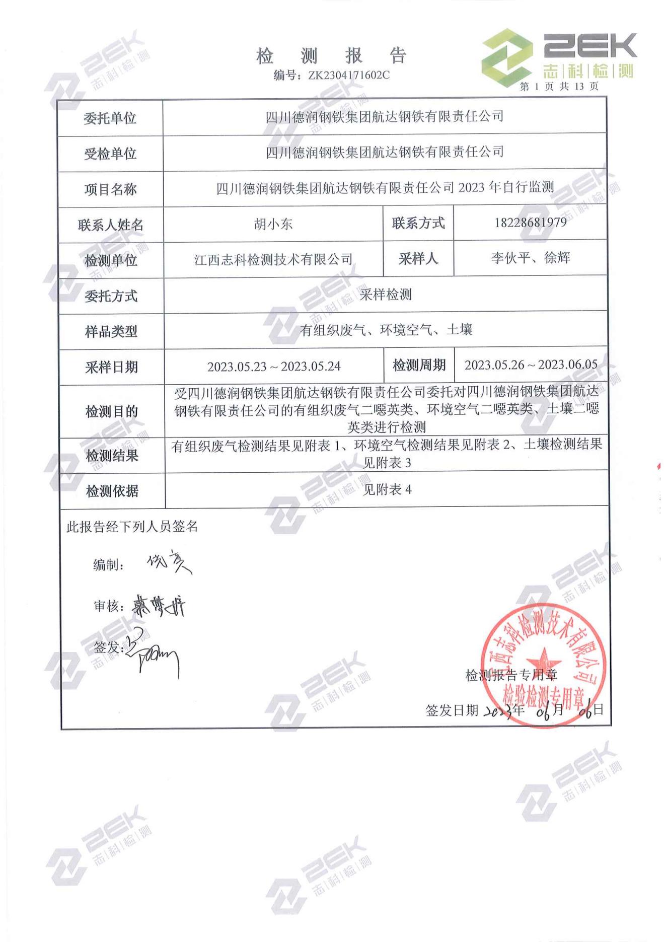 首頁 > 新聞資訊 > 集團要聞 > 航達鋼鐵2023年二季度自行檢測報告(2)