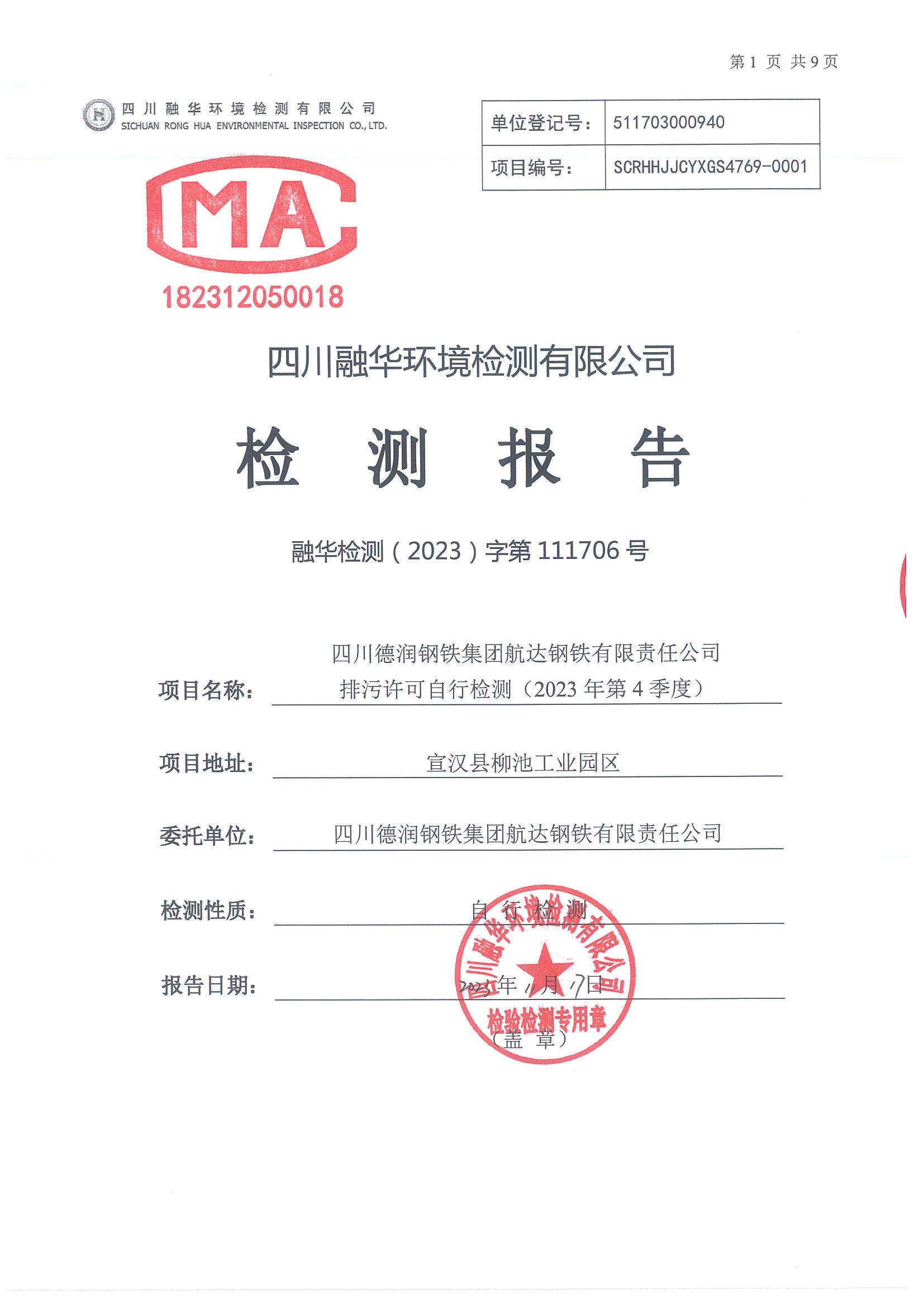首頁 > 新聞資訊 > 集團要聞 > 航達鋼鐵2023年四季度自行檢測報告(1)