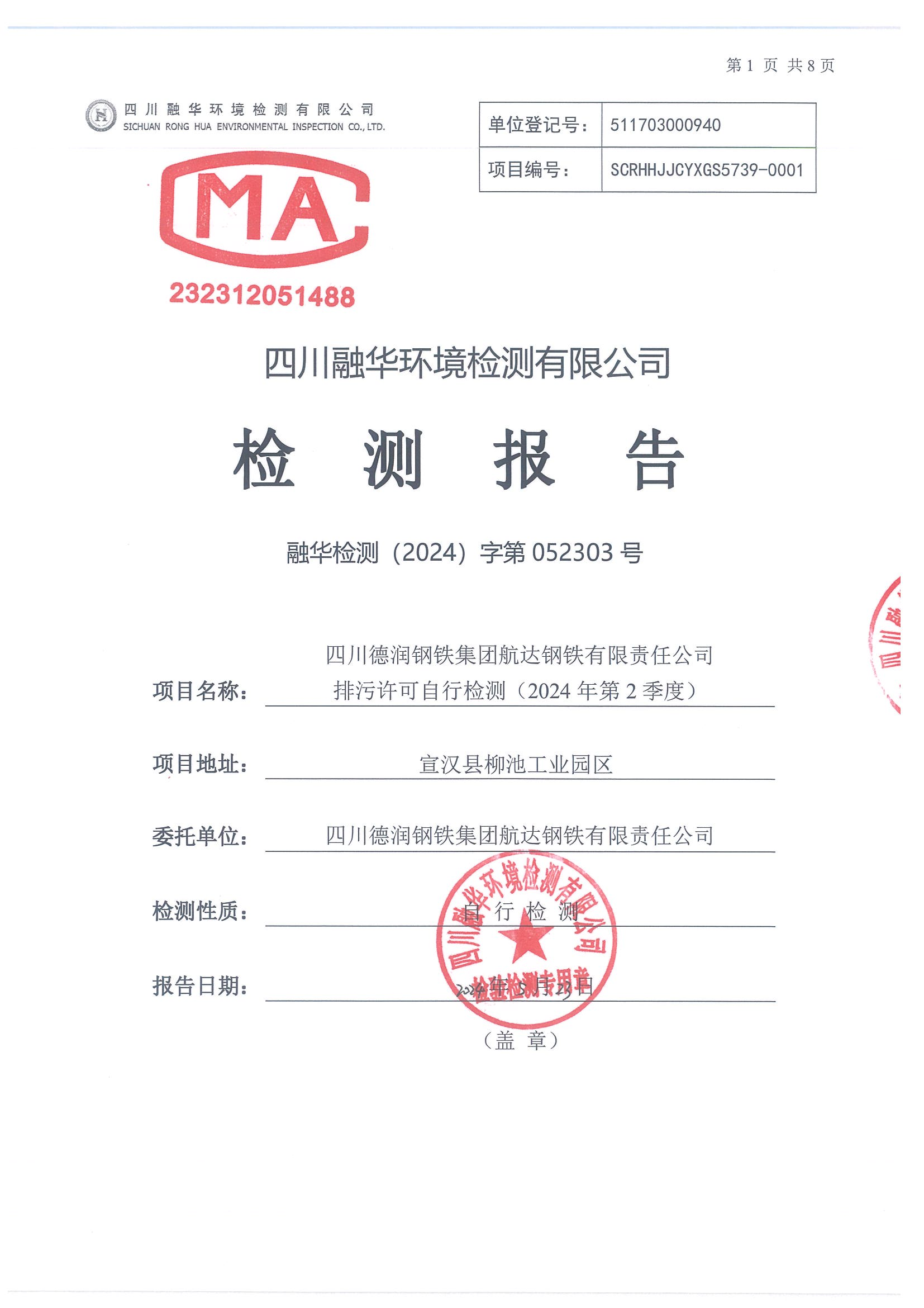 首頁 > 新聞資訊 > 集團要聞 > 航達鋼鐵2024年二季度自行檢測報告