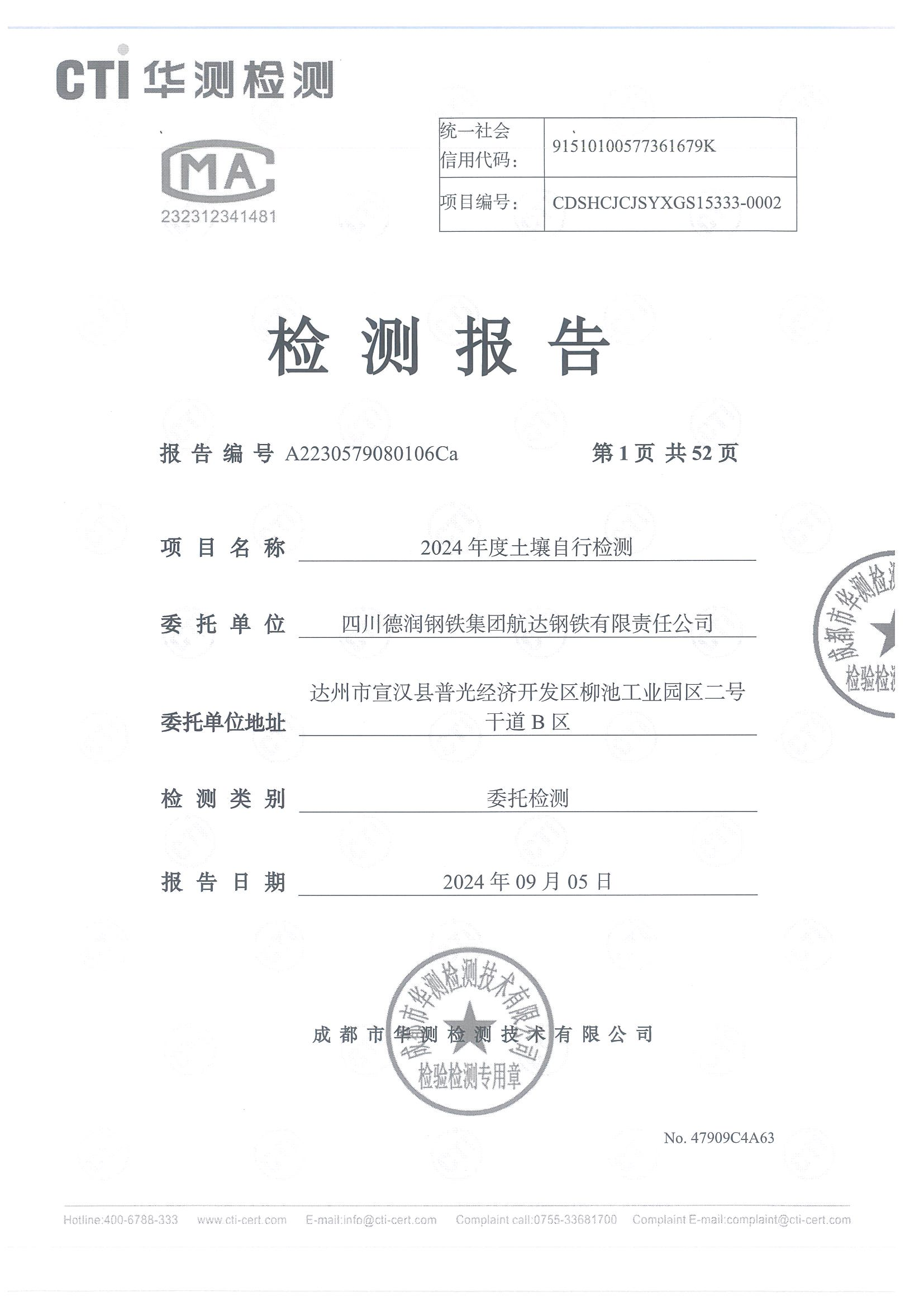 首頁 > 新聞資訊 > 集團要聞 > 德潤航達鋼鐵2024年土壤自行檢測報告